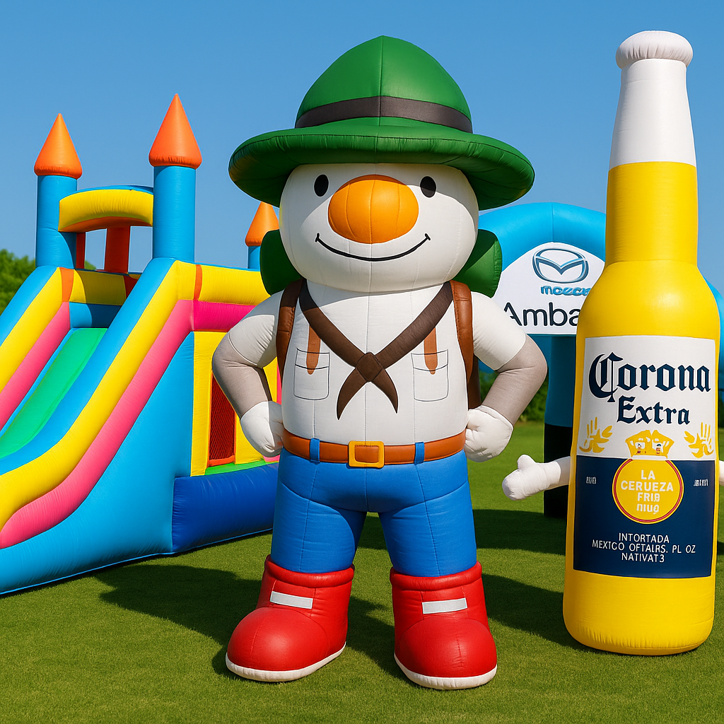 Atracciones inflables gigantes diseñadas para captar la atención de inmediato, perfectos para inaguraciones o eventos que buscan máxima visibilidad.